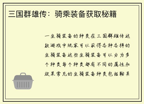 真实武将武器的意义 真实武将武器是《全战三国》中的重要元素,它们不仅是游戏中的装备,更是历史上真实武将的象征。这些武器承载着历史的记忆,给玩家提供了更加真实的游戏体验。本文将从多个方面详细介绍如何使用真实武将武器,帮助玩家更好地理解和利用这些武器。 武将武器的分类 1. 剑 剑是《全战三国》中最常见...